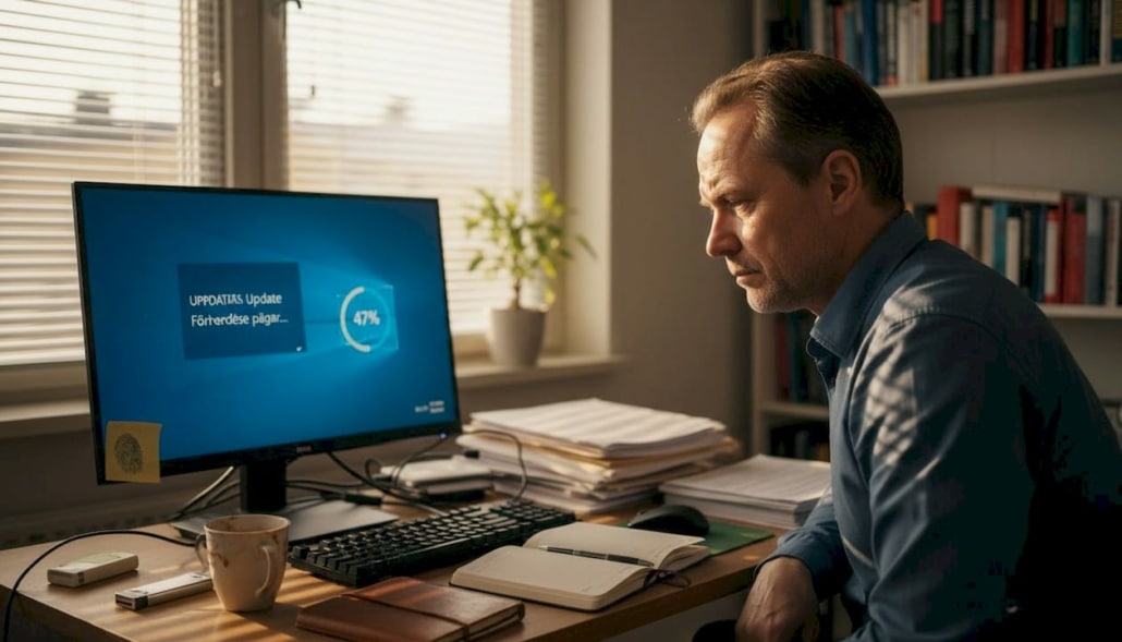 När Windows fastnar mitt i en uppdatering och skärmen visar en roterande cirkel i timmar, kan det kännas som om datorn tagit semester utan att fråga dig först. Detta är ett av de vanligaste och mest frustrerande problemen för både privatpersoner och småföretag i Stockholm. I denna guide går vi igenom varför uppdateringar fastnar, vilka steg du kan ta för att lösa problemet snabbt, och när det är dags att söka professionell hjälp. Vi visar dig praktiska metoder som fungerar i verkligheten, från enkla felsökningsverktyg till avancerade tekniker i felsäkert läge.