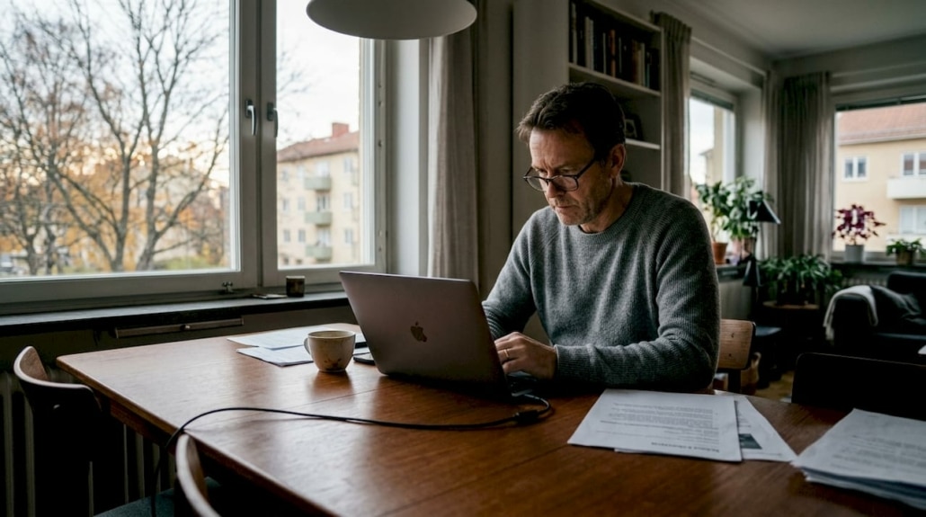 Man arbetar vid skrivbordet hemma.
